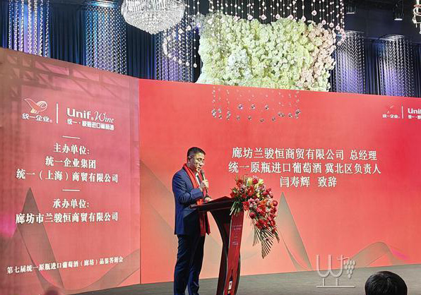随着《马踏山河,鼓震乾坤》开场舞的震撼上演,晚宴拉开帷幕。在热烈的掌声中,廊坊市兰骏恒商贸有限公司总经理、统一原瓶进口葡萄酒冀北区负责人闫寿辉,三河古都燕潮酩酿酒有限公司总经理、廊坊市酒类行业商会会长张淘,廊坊市黑龙江商会秘书长刘晓梅,统一企业集团葡萄酒事业部全国市场总监范丽琴先后致辞,分享行业发展趋势,表达对未来合作的期许。
